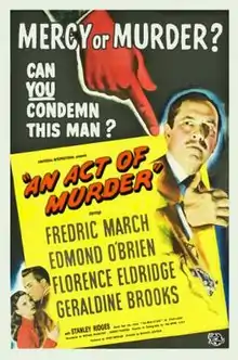 An Act of Murder (also known as Live Today for Tomorrow and I Stand Accused)[2] is a 1948 American film noir directed by Michael Gordon and starring Fredric March, Edmond O'Brien, Florence Eldridge, and Geraldine Brooks. It was entered into the 1949 Cannes Film Festival.[3]