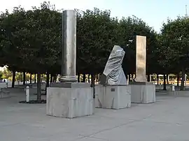 An Urban Allegory is a 1992 steel sculpture by Neil Hadlock, installed in Salt Lake City, Utah, United States. The sculpture measures approximately 8 x 4 x 20 feet and rests on a concrete base which measures approximately 4 x 4 x 4 feet. It was dedicated in June 1992. The artwork was surveyed by the Smithsonian Institution's "Save Outdoor Sculpture!" program in 1993.[1]