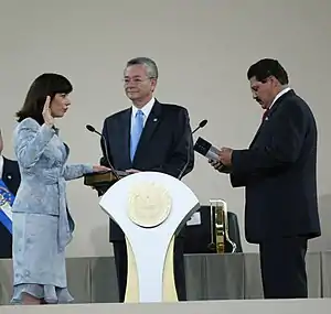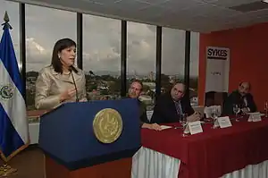 She is the first woman to serve as vice president, complementing the presidential formula of Elías Antonio Saca for the term 2004–2009. Their victory was the outcome of the most attended election in Salvadoran history, giving their party, ARENA, 58.5% of the votes, 20 points above its closest contender. She sought the nomination for president of El Salvador in the presidential primary of 2008 but was defeated by National Police Chief Rodrigo Ávila.