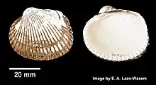 Anadara ovalis, or the Blood ark clam, is a clam in the family Arcidae. It can be found along the Atlantic coast of North America, ranging from Massachusetts to the West Indies and Brazil.[1] It resides from the low-tide line to a depth of ten feet.