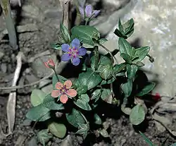 Traditionally included in the primrose family Primulaceae, the genus Anagallis was placed in the family Myrsinaceae[7] until that family in turn was included in Primulaceae in the APG III system. The genus Anagallis is included in Lysimachia by some authors.[8]