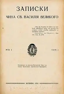 - "Analecta Ordinis S. Basilii Magni/Zapysky ChSVV". Encyclopedia of Ukraine. Retrieved 31 December 2018.