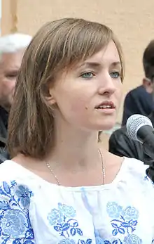 Anastasia Dmitruk (Ukrainian: Анастасія Дмитрук, Russian: Анастасия Дмитрук; born 31 January 1991, in Nizhyn) is a Ukrainian poet who writes in the Russian and Ukrainian languages.[1] She writes poetry and has worked as an information security specialist after graduating from Kyiv Polytechnic Institute.[2] Never ever can we be brothers, written in Russian, has become her most widely cited poem.