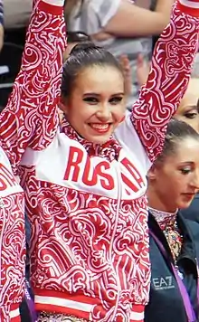 Anastasia Konstantinovna Nazarenko (Russian: Анастасия Константиновна Назаренко; born 17 January 1993) is a Russian group rhythmic gymnast. She is the 2012 Olympics Group All-around champion, the 2011 World Group All-around silver medalist and the 2010 European Group All-around gold medalist.