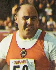 As an athlete, Bondarchuk accumulated numerous international awards and honors throughout a long career. Beginning the hammer throw at a late age of 24, he won his first international title at the 1969 European Championships. Near the end of the season, Bondarchuk set two world records in the event.[1] Bondarchuk remained among the world's elite for several years and won the gold medal at the 1972 Summer Olympics while setting an Olympic Record of 75.50 meters.[2][3] Four years later, he earned the bronze medal at the 1976 Summer Olympics. For his Olympic achievements Bondarchuk was awarded the Order of the Badge of Honour in 1972 and the Order of the Red Banner of Labour in 1976.[4]