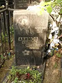 Anatoly Mikhaylovich Akimov (Russian: Анато́лий Миха́йлович Аки́мов; April 6, 1915, Moscow, Russian Empire - August 10, 1984, Moscow, RSFSR, USSR) is a Soviet football goalkeeper. Honored Master of Sports of the USSR (1940), Honored coach of the RSFSR (1963). Player Team Moscow. Head coach of the Democratic Republic of Vietnam (1958-1960).