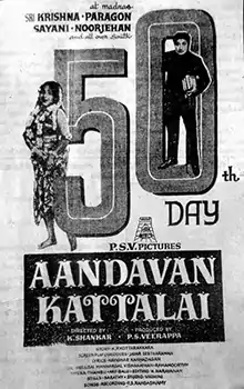 Aandavan Kattalai (transl.God's command) is a 1964 Indian Tamil-language film directed by K. Shankar and produced by P. S. Veerappa. Music was by Viswanathan–Ramamoorthy. The film stars Sivaji Ganesan and Devika, with J. P. Chandrababu, K. Balaji, S. A. Ashokan, A. V. M. Rajan and Pushpalatha in supporting roles. It was released on 12 June 1964.[1]
