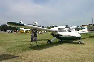 Wind tunnel testing determined that a shoulder wing was ideal for minimal wing-body airflow separation that is intrinsic to a pusher configuration. The aspect ratio of 9.6:1 was high for aircraft at the time it was designed. The wing has 7 degrees of dihedral for directional stability. A four inch propeller shaft extension allows the engine to be mounted closer to the aircraft's center of gravity. The nose gear steers through the control yoke and not the rudder pedals.[3]