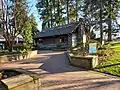 The official name of the park is Albert Anderson Memorial Park, often shortened to Anderson Park, or referred to by the original name of Redmond City Park.[2] Albert Anderson was key to the modern redevelopment of the park through his community work regarding park projects and volunteer coordination.[2] The main features of the park include a set of two cabins formerly used for public events and services, formerly hosting the Redmond Senior Center and various other city administrative offices prior to the development of city hall.[2]