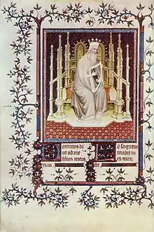 André Beauneveu (born c. 1335 in Valenciennes, died c.1400 in Bourges) was an Early Netherlandish sculptor and painter, born in the County of Hainaut (Valenciennes is today in France), who is best known for his work in the service of the French King Charles V, and of the Valois Duke, Jean de Berry. His work in all media shows a generally naturalistic and 'sculptural' style, characteristic of the 'Pucellian revival' of the latter 14th century.[1]