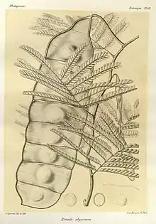 André Revillon d'Apreval was a French botanical illustrator and lithographer, active 1875–1910, and known for his images in Plantae Davidianae (1884–88), Illustrationes Florae Insularum Maris Pacifici (1886–92) and Histoire physique, naturelle et politique de Madagascar (1882).[1][2][3] Henri Ernest Baillon, the French physician and botanist, and main contributor to Histoire physique, naturelle et politique de Madagascar,[4] named a new genus d'Aprevalia after him in 1884,[5] no doubt in honour of his illustrating the work, but the name was later placed under Delonix by René Paul Raymond Capuron.[6][7] A number of species such as Commiphora aprevalii (Baill.) Guillaumin, were named to commemorate him.[8]