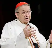 André Armand Vingt-Trois (French: [ɑ̃dʁe aʁmɑ̃ vɛ̃ttʁwɑ]; born 7 November 1942) is a French cardinal of the Catholic Church. He served as Archbishop of Paris from 2005 to 2017, having previously served as Archbishop of Tours from 1999 to 2005. He was elevated to the cardinalate in 2007.