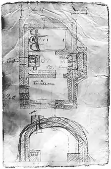 However, the floe began to break up directly under the hut on 2 October, from the stresses of pressing against Kvitøya, and they were forced to bring their stores on to the island itself, which took a couple of days. Despite these difficulties, Andrée recorded in his diary, "Morale remains good. With such comrades one should be able to manage under, I may say, any circumstances".[41][42] Strindberg's more laconic diary entries indicate that on October 5 the party landed on the island. Strindberg then wrote "Snowstorm reconnaissance" on October 6 and the single word "Moving" on October 7.[43] Later scientific analysis revealed the contents of the final pages of Andrée's diary, with its last entry on October 8 reading: "It feels fine to be able to sleep here on fast land as a contrast with the drifting ice out upon the ocean where we constantly heard the cracking, grinding, and din. We shall have to gather driftwood and bones of whales and will have to do some moving around when the weather permits."[44][45] It is inferred from the end of Strindberg's diary on October 7 and Andreé's on October 8 that the three men died shortly afterwards.[46][47]