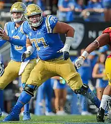 James was a member of the UCLA Bruins, redshirting his true freshman season. He became a starter during his redshirt freshman season following an injury to Kolton Miller.[3] James started the final 32 games of his collegiate career, appearing in 35 games total.[4] As a redshirt junior, he made the decision to play in the Bruins' week seven game against Arizona and continue his consecutive games started streak despite his father passing away of cancer earlier that week.[5] James declared for the NFL Draft on December 18, 2018, forgoing his final season of NCAA eligibility.[4]