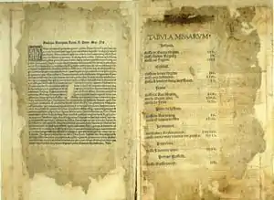 One of his Roman-period publications, the Liber quindecim missarum of May 9, 1516, contained masses by Josquin des Prez, Pierre de La Rue, Antoine Brumel, Jean Mouton, Antoine de Févin, and Matthaeus Pipelare. This was the first sacred music to be published at Rome itself (Petrucci had published sacred music in Venice more than a decade earlier). Antico told Pope Leo X in the dedication that he had spent three years laboriously preparing the woodcuts for this publication. The graphic artist responsible for the cover page designs as well as the abundant illustrations in the Liber quindecim missarum and elsewhere was probably Giovanbattista Columba.[4]