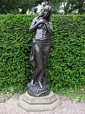 Lucchesi specialised in the female nude, naturalistically represented under allegorical titles, such as Destiny[7] and the undisguisedly erotic Myrtle's Altar (1899), manifesting clear influences of Art Nouveau and, in the finely modelled symbolic representations of crown, sword, spilled bag of coins, of Symbolism.[8] In addition to his own work, he assisted Henry Hugh Armstead and Edward Onslow Ford, and provided models for electroplate silverware by Elkington & Company and the Crown Jewelers, Garrard's. He also produced portrait busts: his bronze bust of Sir John Franklin (1898) is conserved at the National Portrait Gallery, London.[9]