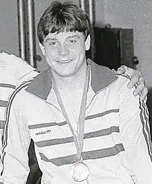 Andrei Socaci (born 19 June 1966) is a retired Romanian weightlifter. After winning a silver medal at the 1984 Olympics as a lightweight[3] he moved up to the middleweight division and won nine medals at the world and European championships between 1985 and 1992, including the European title in 1991.[4] After retiring from competition he stayed as a coach with his last club CS Dinamo București.[2]