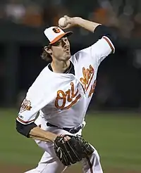 On July 31, 2014, Boston traded Miller to the Baltimore Orioles for minor-league pitcher Eduardo Rodríguez.[35] On September 7, 2014, Miller completed a scoreless 11th in a 7−5 victory over Tampa Bay for his first career save.[36] The Orioles clinched their first American League East title in 17 years on September 16, 2014, in an 8−2 win over Toronto.[37] He faced two batters in that game and struck both out.[38]