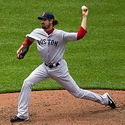 On November 12, 2010, the Marlins traded Miller to the Boston Red Sox for relief pitcher Dustin Richardson.[24] Boston non-tendered him less than a month later. Manager Terry Francona estimated that he "must have made 15 calls that winter trying to get him to come to the Red Sox" after they club non-tendered him because he saw that flaws in his pitching mechanics could be easily corrected.[25] Miller re-signed with Boston on December 16, 2010.[26] During 2011 spring training, Boston optioned Miller to minor league camp and announced that he would begin the year as a starting pitcher with the Triple-A Pawtucket Red Sox.[27]