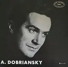 A proponent of Ukrainian music in the United States, he frequently performed and conducted works by Ukrainian composers.[23] In 1968, he recorded an album of songs composed by the popular Ukrainian musician Bohdan Weselowsky, entitled Andrij Dobriansky with songs by J.B. Wesolowsky.[24] For decades, he performed as a soloist with the New York-based Dumka chorus[25] and served as artistic director and consultant to many Ukrainian musical productions, including the Ukrainian Composers Series at the Town Hall[26] and the Ukrainian Institute of America,[3][27][28] From 1980 until his death, Dobriansky was a liturgical cantor as well as the director of the Andrey Sheptytsky choir at Saint George Ukrainian Catholic Church in New York's Little Ukraine.[29]
