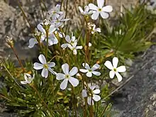 Androsace lactea, the milkwhite rock jasmine, is an alpine plant, in the family Primulaceae.