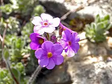 | Flowers of Androsace sarmentosa at the Giardino Botanico Alpino Chanousia | |