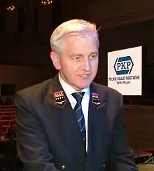 Andrzej Wach is President of Polskie Koleje Państwowe S.A. (Polish State Railways). He replaced previous president, Macieja Męclewskiego, in September 2004.[1][2] He has worked for Polish railways since 1980, and previously held the position of Chairman in PKP Energetyka.[3]