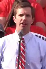 On November 5, 2019, Beshear faced off in the general election against incumbent Republican Governor Matt Bevin, the least popular governor in the United States, with only a 33% approval rating in April 2019.[37][38][39]