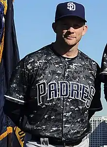 After spending one season as a third base coach for the Diamondbacks, on October 29, 2015, Green was named manager of the San Diego Padres.[8][9] Green's first managerial ejection occurred on April 19, 2016, during a game against the Pittsburgh Pirates. After a balk was called on Padres pitcher Colin Rea, then reversed, then called again, Green came out to argue with umpires Mark Carlson and Brian Gorman. Gorman eventually ejected Green, and Green had to be escorted back to the dugout by bench coach Mark McGwire.[10] Green's first season was marred by a rebuild, as the Padres front office traded away veterans James Shields, Melvin Upton, Jr., and Matt Kemp, leading to a 68–94 season.