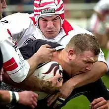 Grundy then went on to play for the Gateshead Thunder, Lancashire Lynx and the Rochdale Hornets in the Northern Ford Premiership.[3][4][5] In 2001 Grundy was selected for Wales, after mutually agreeing to terminate his contract with Gateshead Thunder with three games of the season remaining, for a short stint with the Warrington Wolves.[6]