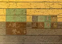 The Angel Island Chinese Monument (37°52′13″N 122°25′32″W) is a monument dedicated to Chinese immigrants who entered the United States through the immigration station.[14] It was completed in 1978 and placed in 1979.[15] The monument's inscription says "Leaving their homes and villages, they crossed the ocean only to endure confinement in these barracks. Conquering frontiers and barriers, they pioneered a new life by the Golden Gate."[14] The inscription is reminiscent of Chinese poems that were carved into the barracks walls of the immigration station by detained Chinese immigrants.[16]