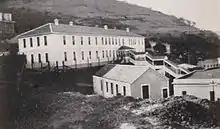 Angel Island Immigration Station, sometimes known as "Ellis Island of the West," began construction in 1905 and opened January 21, 1910. Construction of the facility involved leveling a former Coast Miwok village site and shell mound, including the interred remains of numerous people.[7] The main difference between Ellis Island and Angel Island was that the majority of the immigrants that traveled through Angel Island were from Asian countries, such as China, Japan, and India. The facility was created to monitor the flow of Chinese immigrants entering the country after the implementation of the Chinese Exclusion Act in 1882. The Act only allowed entrance to merchants, clergy, diplomats, teachers, and students, barring laborers.[5] The Act did give the government an idea of how to begin to regulate immigration, and realize the potential effect of immigration on the economy.
