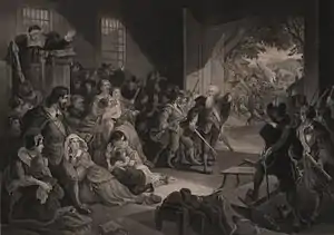 The legend furnished ideas used by Sir Walter Scott in Peveril of the Peak and by James Fenimore Cooper in The Wept of Wish-ton-Wish.[2] It is also a likely source for "The Grey Champion", a Nathaniel Hawthorne short story that features an elderly Puritan man who brandishes a sword in defense of his people. Jack Dunn wrote The Diary of General William Goffe published in 1982 which was syndicated in The Valley Advocate in weekly installments as "The Angel of Hadley".