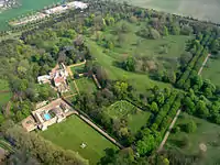 The grounds are bounded on the north-west by Bottisham Lode, with Lode Mill, bought and restored by Lord Fairhaven in 1934, at its head. To the south of the mill is the quarry pool, a large pool believed to be the site of a 19th-century coprolite mine.[4]
