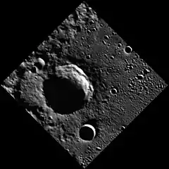 Anguissola is shown on the rim of the large crater Henri