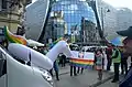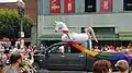 Inflatable unicorn at a pride parade in Portland, Oregon, 2017
