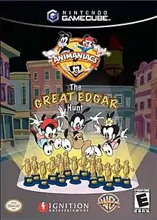Animaniacs: The Great Edgar Hunt is an action-adventure video game, released in North America, Europe and Australia in 2005. It is based on the cartoon series Animaniacs from Warner Bros. and features the same voice actors for the main characters. The game is one of multiple Animaniacs video games. It was the first Animaniacs-related project to be released since the animated comedy film Wakko's Wish in 1999. It was released on the GameCube, PlayStation 2, and Xbox, with the latter two versions being released exclusively in Europe, while the GameCube version was released in both Europe and North America. A North American PlayStation 2 and Xbox version of the game were advertised but never released.
