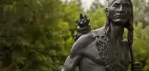 Original photo of Champlain Statue with Anishinaabe Scout
