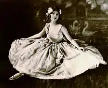 Ludmilla was born in the Englewood suburb of Chicago and at age five began studying dance with Mabel Wentworth. Jean, as she was then known, had two ballerina idols, Adeline Geneé and Anna Pavlova, but it was Pavlova who inspired her the most. During her eighth grade year of public school, in 1915, Jean got a chance not only to see Pavlova and her Imperial Russian Ballet perform, but to meet her idol. The company performed at night, while during the day Pavlova was starring in a movie being filmed near Midway Gardens theatre, and Mabel Wentworth was granted permission to introduce a few of her students to the internationally renown ballerina. It was an experience Jean would never forget. From then on the aspiring ballerina began collecting photographs of Pavlova.[1] When she heard about a new dance school in Chicago, founded by two of Pavlova's former male danseurs, Jean left Mabel Wentworth's school to begin taking lessons from Serge Oukrainsky and Andreas Pavley. She auditioned for their newly organized company. By 1916, at age thirteen, Jean was the principal ballerina in America's first internationally touring ballet company, the Oukrainsky-Pavley Ballet.[2] Because Serge Oukrainsky, a Russian, and Pavley, a Dane, believed it in their company's interest (for publicity and to increase ticket sales) to promote Jean as a Russian-trained, rather than an American-trained, ballerina, they changed her name to Anna Ludmilla (often spelled Anna Ludmila and, occasionally, Ana Ludmilla).[3] The company toured the U.S., performing in urban cities in states such as Nebraska, Missouri, Wisconsin and Massachusetts. Ludmilla dropped out of high school to pursue her career as a professional dancer; a career choice her mother supported but her father and grandmother opposed. Her unconventional career path as a ballerina in the early 1900s, and her Russianized name, would cause an estrangement with her father. In 1917, she had her New York City debut at Carnegie Hall with the New York Symphony where she met Walter Damrosch.[4] Theatre Magazine would name Ludmilla the American Pavlova.[5]