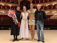 She has appeared in lead roles with the Bolshoi on tour in New York City (2014), Washington DC, Los Angeles, Sydney Australia, Hong Kong, and London. As visiting artist she has led shows with the Teatro dell'Opera di Roma in Rome (2018),[1] and tours of Greece[4] and Israel.[5]