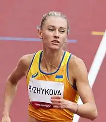Anna Vasylivna Ryzhykova, nee Yaroshchuk (Ukrainian: Анна Василівна Рижикова (Ярощук); born 24 November 1989) is a Ukrainian track and field athlete who specialises in the 400 metres hurdles. She won gold medals at the 2011 Summer Universiade and European U23 Championships. At the European Athletics Championships, Ryzhykova took a bronze in 2012, and a silver in 2018. She placed fifth at the 2020 Tokyo Olympics.