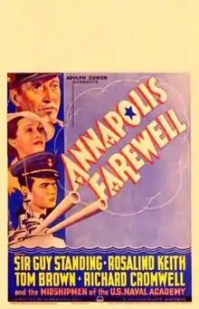 Annapolis Farewell is a 1935 American drama film directed by Alexander Hall and written by Frank Craven and Jack Wagner. The film stars Guy Standing, Rosalind Keith, Tom Brown, Richard Cromwell, John Howard and Benny Baker. The film was released on August 23, 1935, by Paramount Pictures.[1]