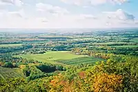 The shelter provided by these two mountainous ridges has produced a "micro climate" which provides relatively mild temperatures for the region and, coupled with the fertile glacial sedimentary soils on the valley floor, the region is conducive to growing vegetable and fruit crops.[3] Particularly famous for its apple crop, the valley hosts in excess of 1,000 farms of various types, the majority being relatively small family-owned operations.
