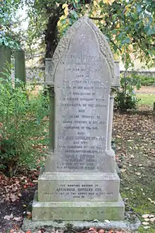 On 17 October 1891, George Cupples died aged 69, and three years later Mrs Cupples decided to join her sisters in New Zealand. She sailed from Plymouth in RMS Gothic for Port Chalmers, arriving there on 14 November 1894. She spent the next four years living with her unmarried sisters, Margaret and Caroline Douglas who lived at Mosgiel, near Dunedin. Anne Jane published George's life's findings on dogs in a lavish illustrated book of over three hundred pages called Scotch Deer hounds and their Masters.[1]