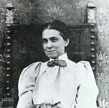 Anne Louise Gregory (sometimes given as Anna Lawrence Gregory) was born July 11, 1868, in Plattsburgh, New York. She studied landscape painting with Charles Melville Dewey in New York and then studied oil painting, water colors and clay modeling at the Victoria-Lyzeum of Berlin. In 1894, she was studying in Paris at the Académie Colarossi, when she met fellow artist Artus Van Briggle, who was researching oriental pottery matte glazes.[1] Gregory's works had earned a solid reputation and she had been accepted to participate in the Paris Salon in several shows.[2] The couple became engaged and in 1896 returned to the United States, where he went to Ohio and she went to Pennsylvania. Gregory took up a teaching post at a local high school, teaching art, French and German.[3]