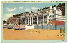 Built in 1929, Ocean House—later called simply the Beach House—was a hot spot on Santa Monica's Gold Coast in the 1930s and 1940s, as William Randolph Hearst and Marion Davies entertained Hollywood's elite at Davies' 5-acre (20,000 m2) estate.[2] Actress Colleen Moore is reported to have called Ocean House "the biggest house on the beach—the beach between San Diego and Vancouver".[3]