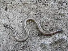 Anniella stebbinsi, the Southern California legless lizard,[1][2] is a small, slender lizard, and, as the name suggests, is legless.[3] Not much is known about the Southern California legless lizard as a separate species, with most observations conducted while it was not recognised as separate from Anniella pulchra.