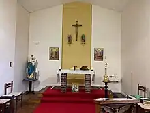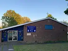 The church was dedicated by Rt Revd Stretton Reeve, Bishop of Lichfield, on 27 March 1958.[1] The building was designed to be dual-purpose, with a sanctuary at one end and a stage at the other, with both capable of being curtained-off.
