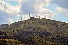 The mountain top of Saint Elias, a name often given to mountain tops in Greece, rises above the village. Here, on 20 July, residents gather in the homonymous chapel, at an altitude of 1.280 meters and perform a liturgy. Due to its high altitude of 1.390 meters, it is also being used as a telecommunications hub for the wider region, with antennas transmitting signals for OTE, television, radio and mobile telephony. It is accessible by a 4 km long road that starts from Doliana.[20][21]