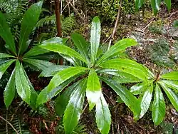 Anopterus glandulosus, commonly known as native laurel or Tasmanian laurel, is a species of shrub or small tree in the family Escalloniaceae. Endemic to south and southwestern Tasmania, A. glandulosus is widespread in the moist understoreys of Tasmanian temperate rainforests and wet sclerophyll forests from sea level to mountainous regions below 1,200 metres (3,937 ft) above sea level.[2][3]